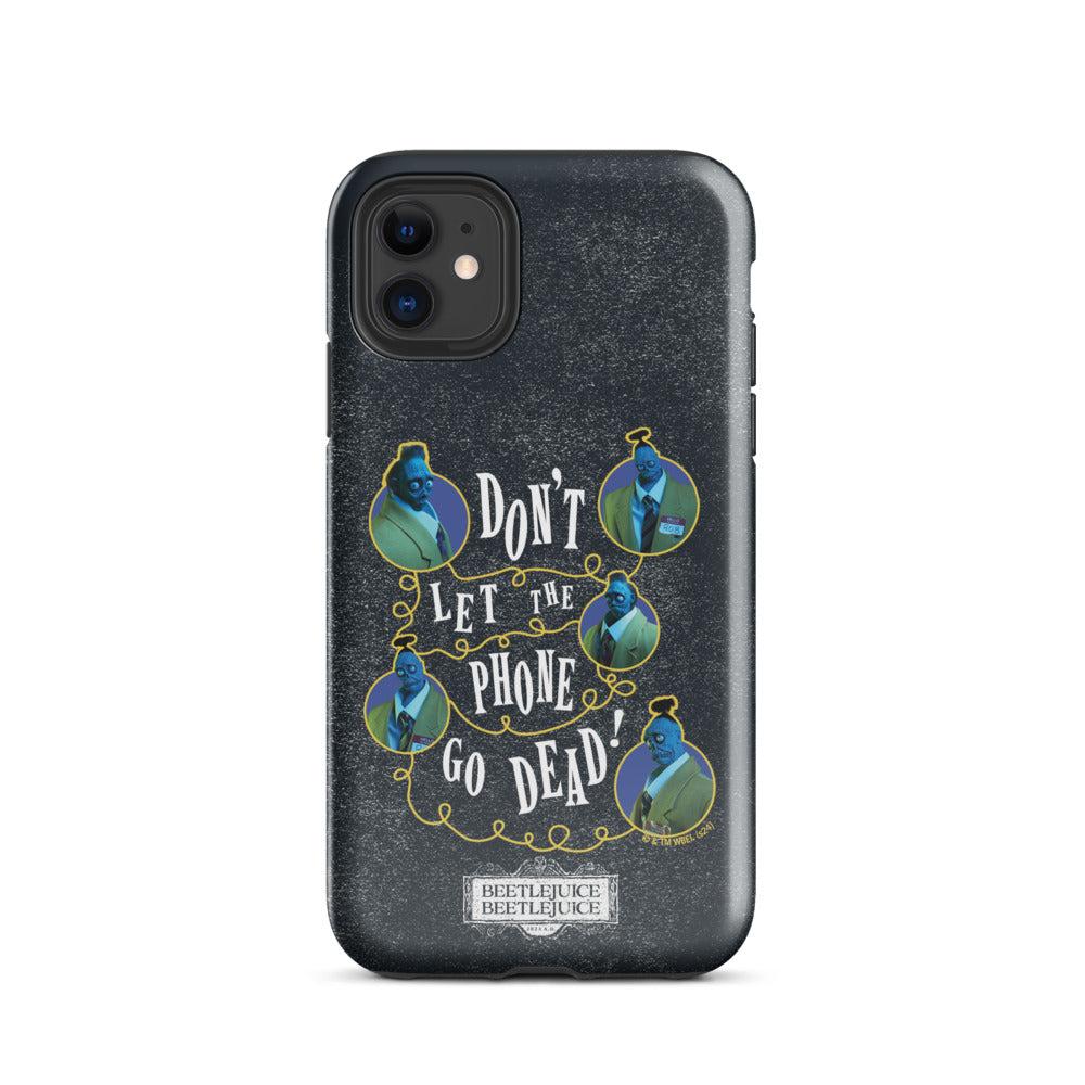 Beetlejuice’s favorite Shrinker, Bob, will keep your phone safe in the afterlife with this Beetlejuice Beetlejuice Don’t Let the Phone Go Dead! iPhone® Tough Case. With a whimsical design and the words “Don’t Let the Phone Go Dead!” this phone case is made with a dual-layer for extra durability and protection with an impact-resistant outer shell and impact-absorbing inner liner.