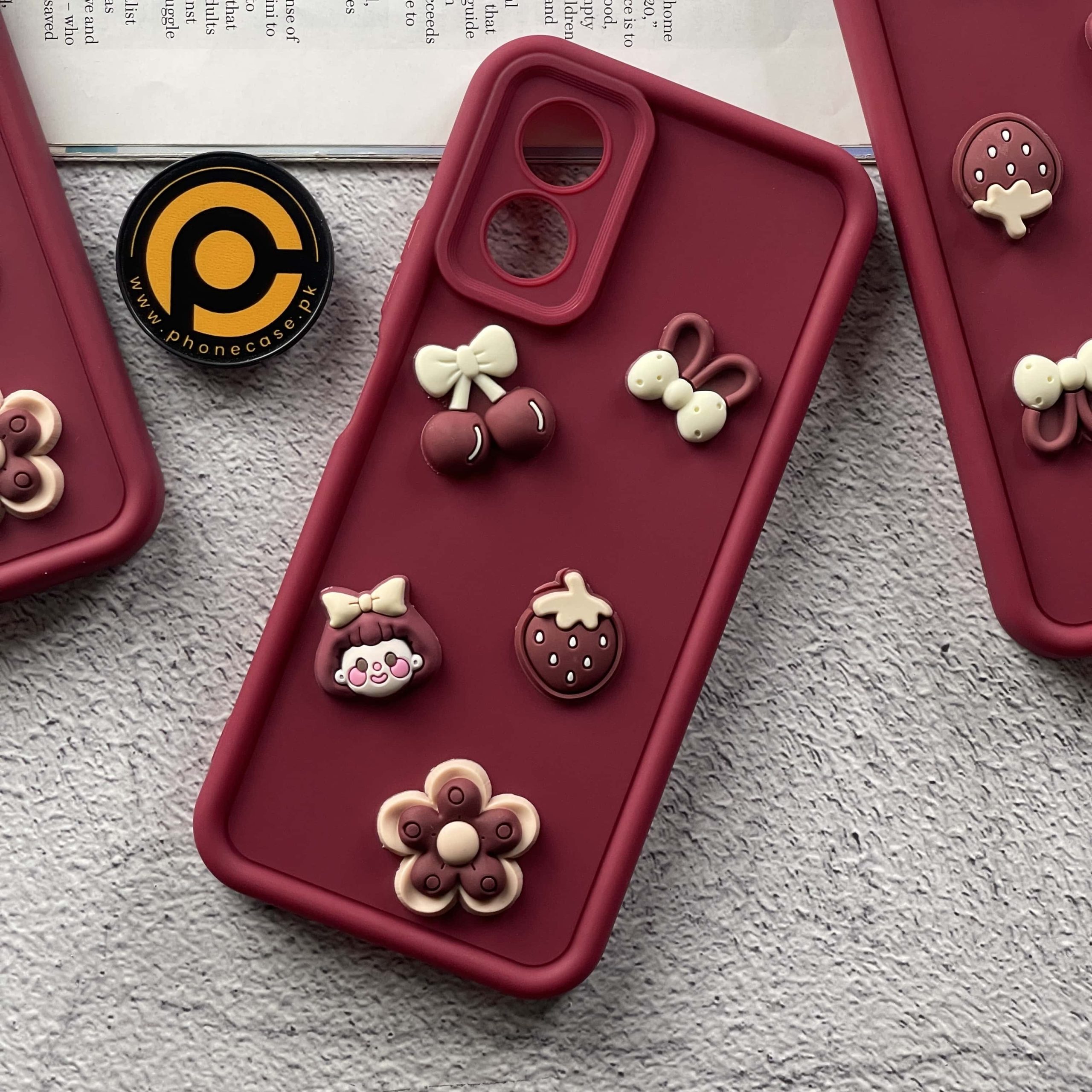 Oppo A38/ A18 Cute 3D Cherry Flower Icons Silicon Case Cheap Sale 2025 Unisex